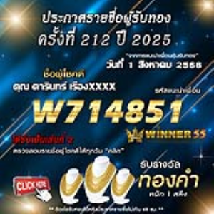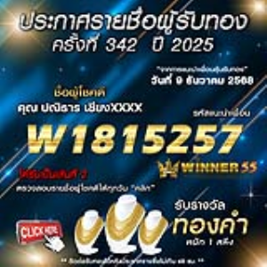 ประกาศรายชื่อผู้โชคดี วลัยลักษณ์ เกิดxxxx ได้รับทองคำหนัก 1 สลึง ประจำวันที่ 06 ธันวาคม 2568