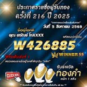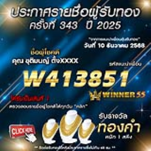 ประกาศรายชื่อผู้โชคดี สุนิตา กาxxxx ได้รับทองคำหนัก 1 สลึง ประจำวันที่ 04 ธันวาคม 2568