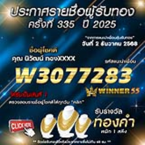 ประกาศรายชื่อผู้โชคดี นิวัฒน์ ทองxxxx ได้รับทองคำหนัก 1 สลึง ประจำวันที่ 02 ธันวาคม 2568